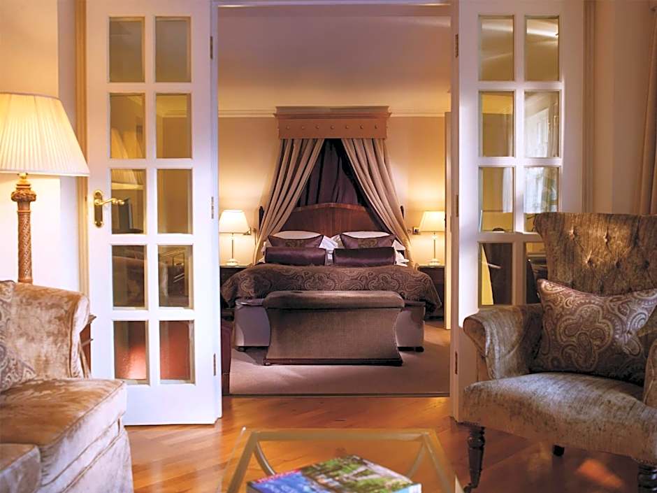 This suite has a king-size bed and is located in the traditional part of the hotel with a view of the lawn and courtyard. The room has a good sized separate lounge area, a large bathroom with a separate shower, bath and bidet. The room has climate control, complimentary WiFi access, complimentary water as well as 42” flat-screen TV, a DVD player, an iPod docking station and a larger selection of Elemis toiletries. Not accessible by elevator.